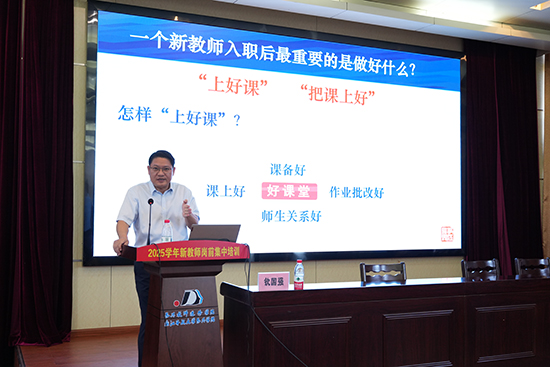 長興縣教育局黨委書記、局長欽國強開講第一課,他和新教師積極互動,圍繞“為什么當老師”這個問題,讓新教師再次明晰自我的職業(yè)選擇和角色定位,樹立育人初心。又從“你認為自己有哪些優(yōu)點適合于從事教師這個行業(yè)”“你認為目前還有哪些不足”“你準備成為怎樣的老師”等問題深入探討,在全場的思維碰撞中,大家對“教育”“教學(xué)”這兩個詞有了更深度的解讀和深刻的思考。長興縣教育局黨委副書記雷曉財進行《新教師的師德啟航——奠定職業(yè)生涯的道德基礎(chǔ)》的師德專題講座,他從教師要遵守的基本行為準則、合理把握教育懲戒的規(guī)則、師德師風(fēng)事件處置原則三方面,進一步強化了新教師要恪守師德,守牢底線不觸紅線。