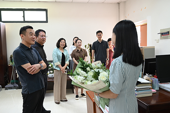 慰問組一行深入校園,視察校園環(huán)境,了解學院在辦學歷史、教育教學、師資隊伍建設等方面的情況,對學院近年來各方面取得的成績給予高度肯定。隨后,他們走進教師辦公室,與老師們親切交流,致以節(jié)日的關懷與問候。