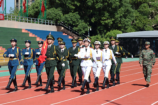 檢閱時(shí)刻,23個(gè)軍訓(xùn)方陣整裝肅立,迎接百官街道人武部部長陸銀鋒和校黨委副書記、校長蔡建的檢閱。一聲聲問候飽含關(guān)懷,一句句回應(yīng)充滿力量。這不僅是五天磨礪的成果,更是職教學(xué)子超越自我、砥礪前行的青春誓言。