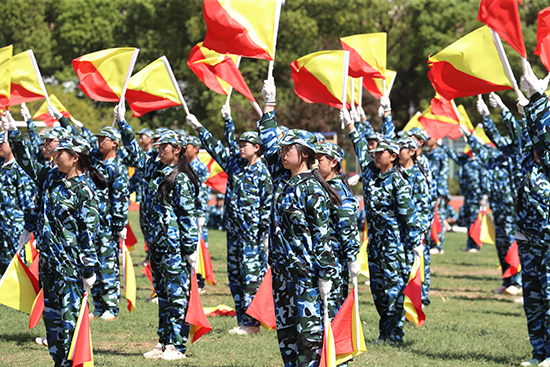 隨后,200名同學(xué)帶來海軍旗語操展示。軍旗飄揚(yáng)間,每一個(gè)動作都如同奏響一曲歌頌紀(jì)律、協(xié)作與忠誠的雄壯軍樂,完美詮釋了嚴(yán)謹(jǐn)、協(xié)作、勇敢、忠誠的精神風(fēng)貌。