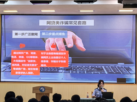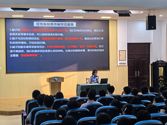 隨后,費警官詳細介紹了當前高發(fā)的詐騙類型,包括網(wǎng)絡(luò)貸款詐騙、兼職刷單類詐騙、網(wǎng)絡(luò)消費類詐騙、冒充身份類詐騙以及游戲類詐騙等。她結(jié)合近期發(fā)生的典型案例,揭示了詐騙分子的慣用伎倆和心理戰(zhàn)術(shù),讓同學們對詐騙的隱蔽性和危害性有了更直觀的認識。