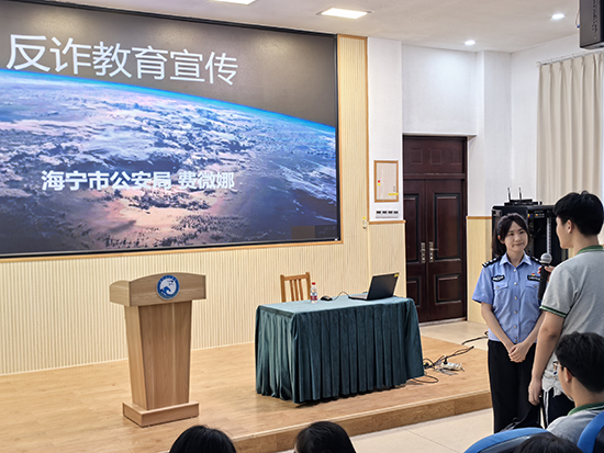 為進一步提高師生的防詐騙意識,9月17日,海寧衛(wèi)生學校(海寧市綜合高級中學)邀請海寧市公安局法制大隊民警費微娜為全校師生開展了一場生動的反詐宣傳講座。講座中,費警官結(jié)合真實案例,深入淺出地講解了當前常見的詐騙手段及防范方法,課堂氣氛熱烈,學生參與積極性極高。
