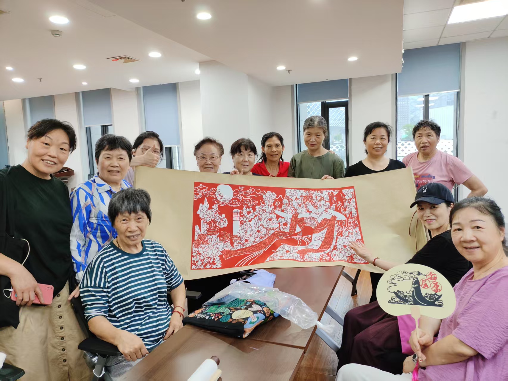 圍繞非遺文化傳承主題,浦沿分院開設非遺手工班,學員通過三期課程親手制作非遺絨花胸針、繩結編手繩、藤編包包、四大名錦裝飾畫、大漆手提包、螺鈿等作品,深度感受非遺魅力;偉業(yè)社區(qū)開設剪紙班,不僅鍛煉學員身心機能,更傳承中華傳統(tǒng)文化,教師李明采用 “示范 + 實操”“線上 + 線下” 結合的教學模式,讓零基礎學員也能輕松上手。