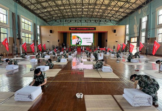 為豐富紹興護(hù)士學(xué)校新生軍訓(xùn)期間文化生活,提升學(xué)生執(zhí)行力、內(nèi)務(wù)整理水平,引領(lǐng)學(xué)生樹立正確勞動觀,近日,紹興護(hù)士學(xué)校在體藝館舉行了2025級新生疊被子比賽。