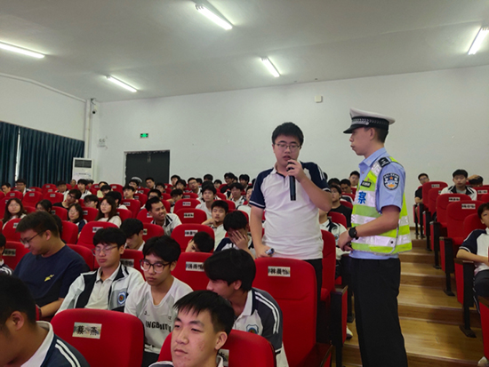 在隨后的互動環(huán)節(jié),現(xiàn)場氣氛活躍。圍繞講座內(nèi)容設(shè)置的交通安全知識搶答引起了同學們的踴躍參與,答對者獲得了特色禮品“小警猴”。在輕松愉快的氛圍中,交通安全知識進一步深入人心。