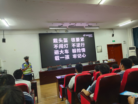 為切實增強學生交通安全意識,營造安全文明的校園周邊環(huán)境,9月23日下午,柳市職業(yè)技術(shù)學校邀請柳市交警中隊來校,為學生構(gòu)建了一堂深入淺出、警教結(jié)合的立體化安全教育課堂。