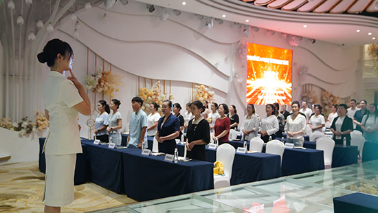 “如果你帶著客人見領(lǐng)導,優(yōu)先介紹哪一位?”“同樣是握手禮,一線員工和領(lǐng)導的執(zhí)行方法可不一樣哦!”課堂上,一線服務員、領(lǐng)班、主管等各崗位的服務特點被逐一剖析,沈老師精準回應一線員工在實際工作中遇到的個性化問題。
