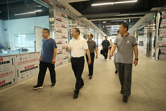 在張武劍和王志勇的帶領(lǐng)下,胡會長一行參觀了校園,了解了學(xué)校的發(fā)展歷史,并實地考察了交通運維與智能制造實訓(xùn)室的建設(shè)進度與設(shè)備投入情況,對新校區(qū)的新面貌贊嘆不已。
