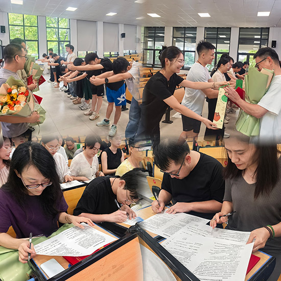 在拜師禮環(huán)節(jié),徒弟們面向師傅行三鞠躬禮,“感謝師傅傾囊相授”“承諾虛心求教”“愿共促成長(zhǎng)” 的心意,盡顯尊師重道之風(fēng);隨后,徒弟們雙手奉上鮮花與艾草錘 —— 鮮花寄感恩,艾草錘傳關(guān)懷,一句 “師傅,您辛苦了!”更讓師徒情誼升溫。師徒雙方鄭重簽署結(jié)對(duì)協(xié)議,老教師們以“傳道、授業(yè)、解惑”為己任,青年教師們以“勤學(xué)、善思、力行”為目標(biāo),共同開(kāi)啟了一段教學(xué)相長(zhǎng)、砥礪前行的新征程。