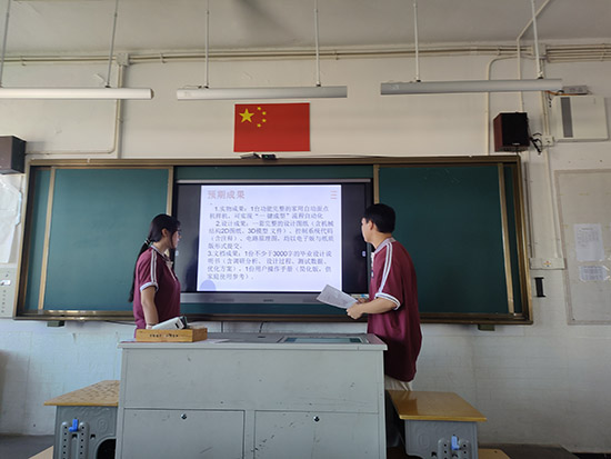 開題論證環(huán)節(jié),同學們上臺向評委老師匯報項目設計思路、分階段實施計劃及預期成果,展現出對課題的設計理念與實踐準備。