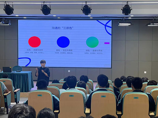 溝通是醫(yī)護(hù)核心素養(yǎng),沈醫(yī)生提出溝通“三原色”:“紅色”代表與同學(xué)相處的熱情協(xié)作,以真誠(chéng)為基、尊重差異;“藍(lán)色”象征與老師交流的信任禮貌,鼓勵(lì)主動(dòng)提問;“綠色”強(qiáng)調(diào)與異性交往的健康界限,專注學(xué)業(yè)。她還通過“命令式vs請(qǐng)求式表達(dá)”的對(duì)比,如“喂,拿書”與“麻煩遞下書,謝謝”,讓學(xué)子直觀感受語言的力量。