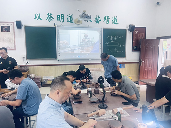 9月28日,培訓進入實地研學環(huán)節(jié)。上午,學員們走進水口鄉(xiāng)成人文化技術學校,實地踏看“紫筍茶藝”“紫砂工藝”特色展示區(qū),直觀感受該校品牌建設成果。隨后,水口鄉(xiāng)成校趙珍校長以《立足鄉(xiāng)域特色 打造成教品牌 助力地方發(fā)展——淺談紫筍茶文化體驗品牌建設》為題作報告,分享該校依托地方特色培育成教品牌的實踐經(jīng)驗,讓學員深刻體會到“一校一品”建設的匠心與巧思。現(xiàn)場,學員們還分組參與手捏紫砂杯、宋代點茶體驗活動,在動手實踐中感受傳統(tǒng)文化與職業(yè)教育融合的獨特魅力。