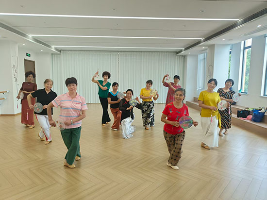 在黨群服務(wù)中心舞蹈教室里,老師正帶領(lǐng)學(xué)員們練習(xí)基礎(chǔ)身段。伴隨著悠揚的古典樂曲,老人們抬手、轉(zhuǎn)身、屈膝,動作雖不似年輕人那般靈動,卻透著一股認(rèn)真與執(zhí)著。“以前總覺得跳舞是年輕人的事,沒想到自己也能跟上節(jié)奏,跳完渾身都舒服!”