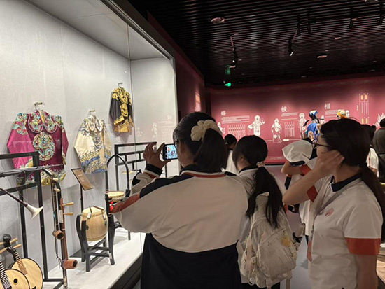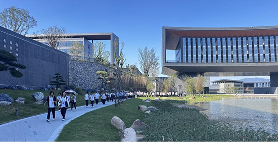 湖州職業(yè)技術(shù)學(xué)院藝術(shù)與時尚創(chuàng)意學(xué)院的李娜和李禎禎老師帶領(lǐng)同學(xué)們開啟了一場沉浸式的校園文化之旅。師生一行首先步入在包婉蓉京劇服飾館,一件件繡工精美、紋樣華麗的戲服靜靜陳列,同學(xué)們駐足良久,在服飾的方寸之間賞析傳統(tǒng)美學(xué)展示的精美服飾與歷史故事,吸引學(xué)生駐足賞析。在圖書館,豐富的專業(yè)藏書與便捷的數(shù)字資源,為學(xué)生們打開了一扇通往設(shè)計前沿的窗口。大家或翻閱紙頁,或瀏覽數(shù)據(jù)庫,在知識的海洋中尋找靈感,汲取專業(yè)成長的養(yǎng)分。