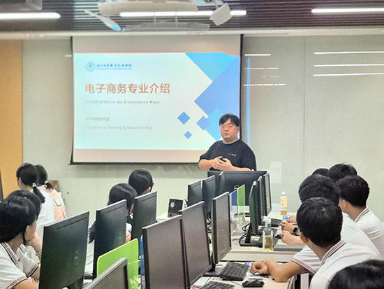 浙江經貿職業(yè)技術學院電商專業(yè)傅老師、夏老師、馬老師、蔣老師,對同學們的到來表示熱烈歡迎。隨后,傅老師圍繞電商專業(yè)展開詳細講解:該專業(yè)是國家高水平專業(yè)群核心專業(yè),同時擁有省級重點專業(yè)、省級示范專業(yè)、省級特色專業(yè)稱號,亦是省內唯一連續(xù)兩屆入選 “十二五”“十三五” 優(yōu)勢專業(yè)的電商類專業(yè)。講解中,傅老師從專業(yè)發(fā)展歷程切入,依次介紹學院電商專業(yè)的師生規(guī)模、人才培養(yǎng)質量指標,重點展示校內外實訓基地建設成果,以及專業(yè)在課程設置、行業(yè)對接方面的獨特優(yōu)勢;同時提及中外合作項目,說明其為學生搭建的多元發(fā)展平臺,讓同學們對電商專業(yè)的未來前景有了更清晰的認知。