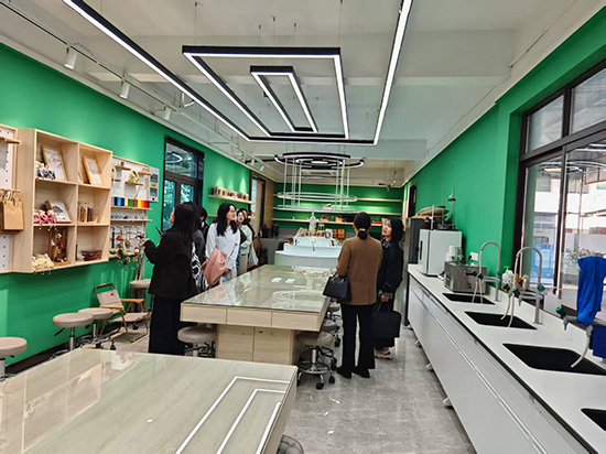 隨后,一行人參觀了學(xué)校中藥傳創(chuàng)館、中藥百草園和中藥標(biāo)本館。傳創(chuàng)館中各類學(xué)生制作的中草藥創(chuàng)意作品引得老師們連連贊嘆;百草園內(nèi)各類中草藥生機(jī)盎然,散發(fā)著自然的芬芳;中標(biāo)本館中,琳瑯滿目的中藥材標(biāo)本制作精良、分類科學(xué),系統(tǒng)展示了中華醫(yī)藥文化的博大精深。來賓們對(duì)學(xué)校將理論教學(xué)與實(shí)物認(rèn)知深度融合的實(shí)踐模式給予了高度評(píng)價(jià)。