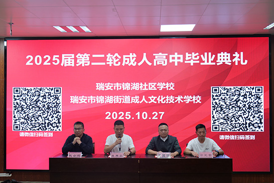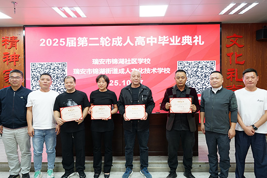 本次畢業(yè)典禮不僅是對(duì)學(xué)員們勤奮學(xué)習(xí)的肯定,更是對(duì)他們未來(lái)投身鄉(xiāng)瑞安市錦湖社區(qū)學(xué)校成功舉辦2025年第二批成人高中畢業(yè)典禮。(張?jiān)僖妫?/p>