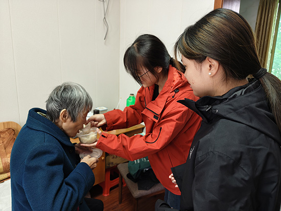 志愿者們還開展了“送服務送溫暖”活動。求是義工團的志愿者們給老人們送上了理發(fā)、剪指甲服務;浙江農商院財會金融學院的學生們端著親手包的餃子走進老人們的房間陪伴老人吃餃子、拉家常,有的學生還拿起隨帶的相機給老人拍照留念。