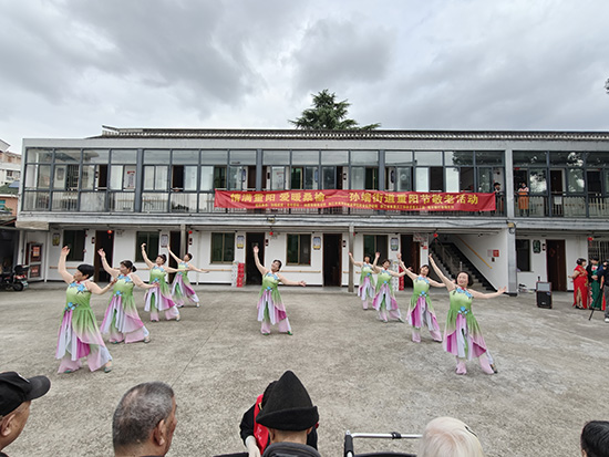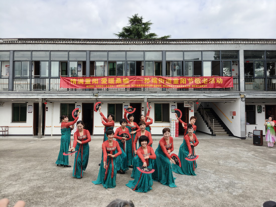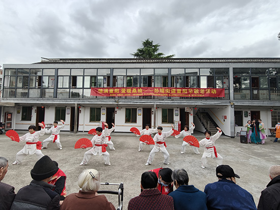 緊接著,孫端老年學校的學員們還為老人們獻上了太極《功夫扇》、越劇《何文秀選段》、排舞《為你祈禱》、表演《小城畫師》等精彩的節(jié)目,她們積極有為、樂觀向上的精神風貌贏得了在場老年人的陣陣掌聲。