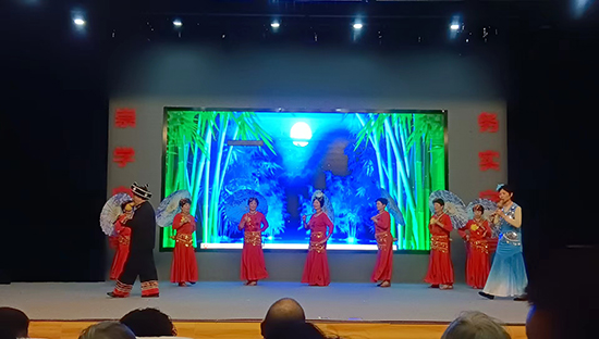 晚會(huì)以融合傳統(tǒng)與現(xiàn)代的文藝演出為核心,天荒坪成校老年學(xué)員成為亮點(diǎn)。葫蘆絲班學(xué)員身著統(tǒng)一服飾,演繹《月光下的鳳尾竹》等經(jīng)典曲目,婉轉(zhuǎn)音韻承載著對(duì)傳統(tǒng)文化的堅(jiān)守;歌詠班則獻(xiàn)上歌舞《紅梅贊》,以鏗鏘舞步與激昂歌聲詮釋革命精神,舞臺(tái)光影間勾勒出“銀齡風(fēng)采”的生動(dòng)畫卷。此類社區(qū)文藝實(shí)踐,呼應(yīng)了全國重陽活動(dòng)中“傳統(tǒng)文化與現(xiàn)代元素創(chuàng)新融合”的節(jié)日理念,使尊老敬老內(nèi)涵更具感染力。