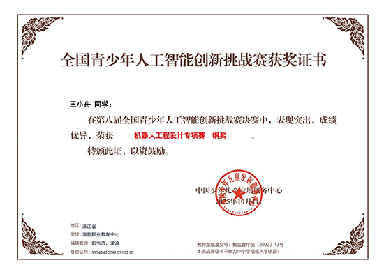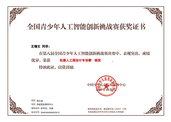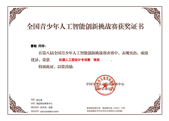 ——海鹽職業(yè)教育中心在第八屆全國青少年人工智能創(chuàng)新挑戰(zhàn)賽總決賽中榮獲一銀二銅
