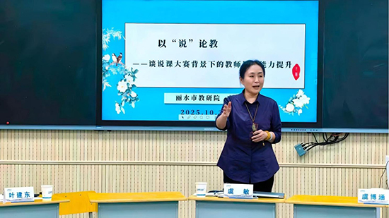 麗水市教研院中職特色專業(yè)教研員虞敏老師以《以“說”論教—談?wù)f課大賽背景下的教師教學(xué)設(shè)計(jì)能力提升》為題開設(shè)專題講座。她指出,說課和上課都是教師淬煉教學(xué)理念、教學(xué)能力、教學(xué)實(shí)踐等綜合素養(yǎng)的“實(shí)戰(zhàn)場(chǎng)”。