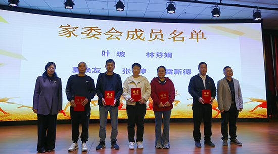 家長(zhǎng)會(huì)伊始,全體家長(zhǎng)齊聚報(bào)告廳參與專題分享。會(huì)議由德育處主任葉贊富主持并宣讀家委會(huì)成員名單。